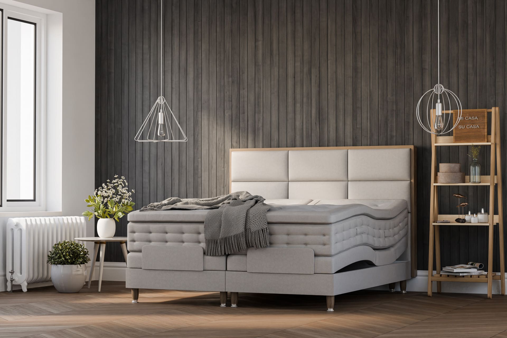 Ecolife biedt verstelbare boxsprings die luxe en comfort verenigen met duurzaamheid, gemaakt van natuurlijke materialen zoals bamboe en agave. Deze bedden zorgen voor optimale ondersteuning en temperatuurregulatie, wat bijdraagt aan een goede nachtrust. De verstelbare hoofd- en voeteneindes maken het eenvoudig om de perfecte houding te vinden voor lezen of ontspannen.